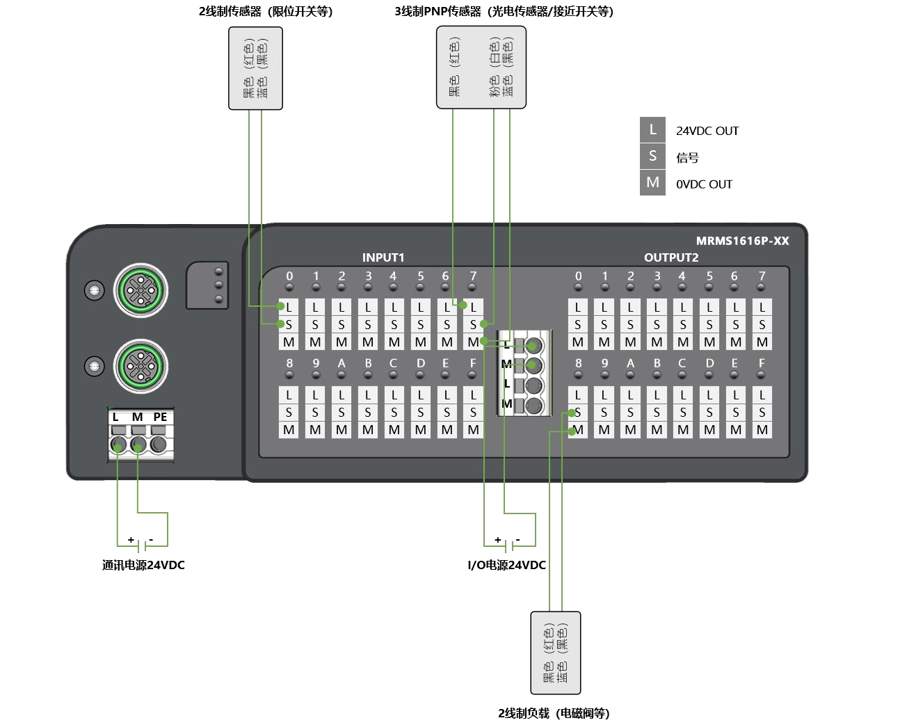 面板式快接線分布式I/O,PROFINET通訊,2xM12,可級(jí)聯(lián);數(shù)字量16入16出 PNP,24VDC,0.5A,歐式彈簧端子;導(dǎo)軌安裝&打孔安裝(下單時(shí)需備注)
